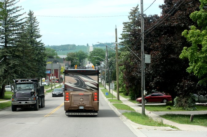 We had only one short slowdown in Toronto. We then travel on the 400 north until the exit to Alliston and our RV Park.