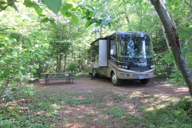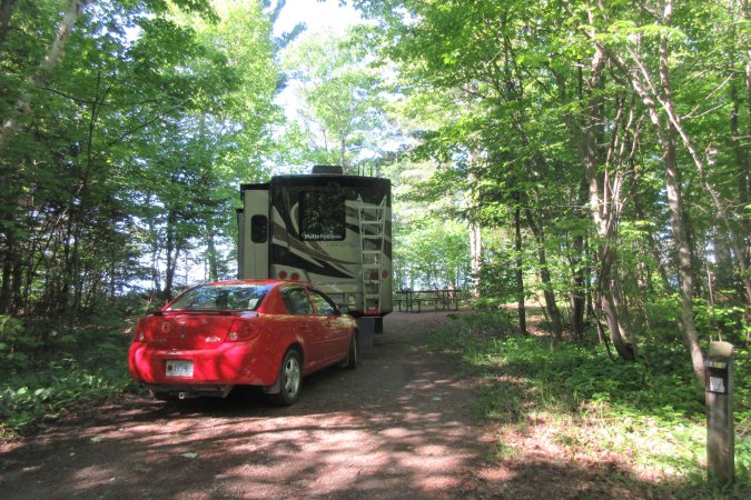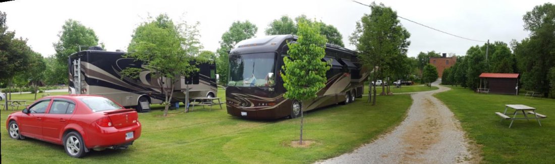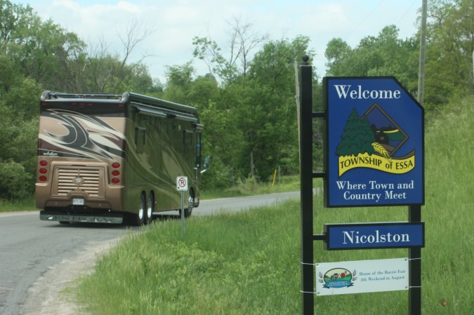 We are on our way to Alliston at the Nicolston Dam RV Park near Borden.