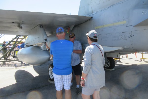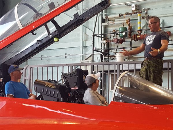 I am explaining some of the systems of the CF-18 to Jannie and Jan.