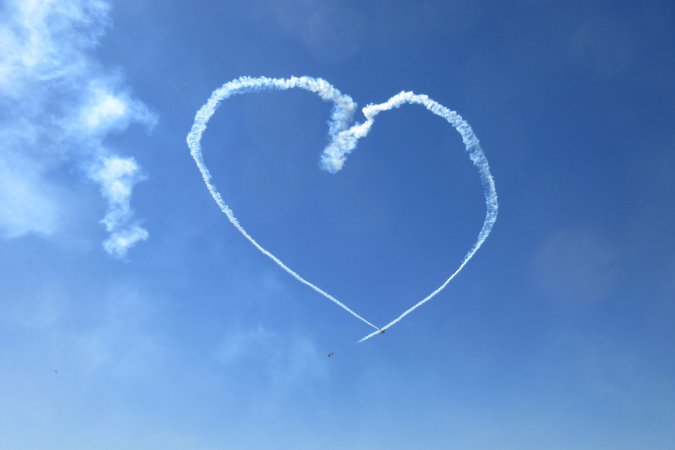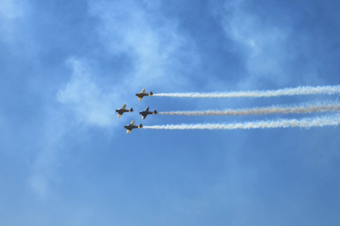 The Harvards in formation flying. They made us a nice heart in the sky.