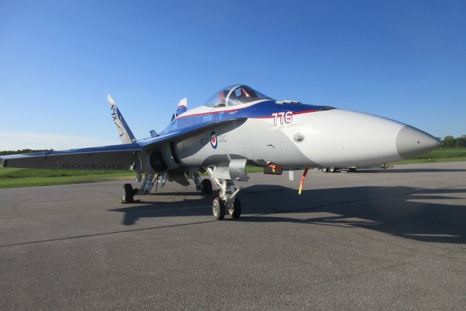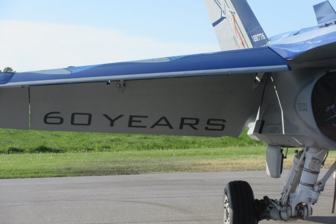 The CF-18 who flew in the air show for us today. It is painted in the colours of NATO's 60th anniversary.