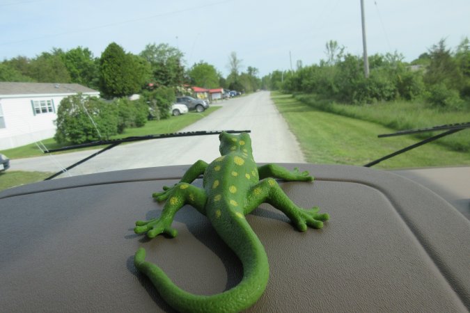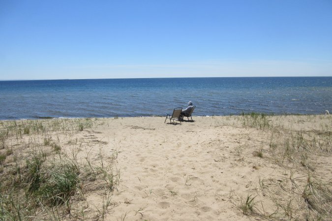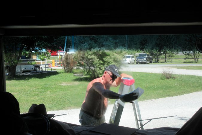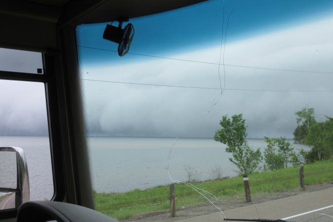 We can see Lake Superior from our windshield. Hard to see in the photo.