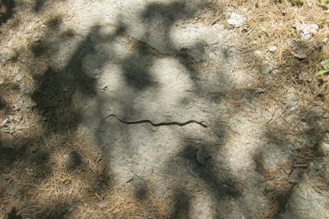 The black stuff on the pavement are caterpillars trying to cross the road and getting squished.