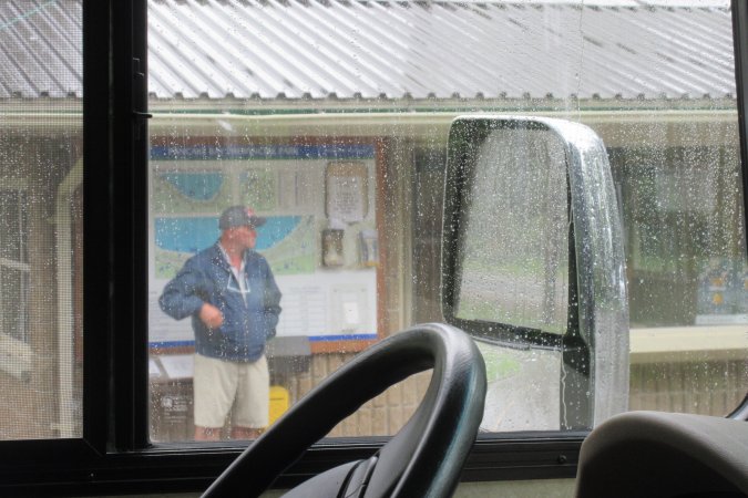 And the rain starts just when we get there. To top it off, nobody is in the office right now.