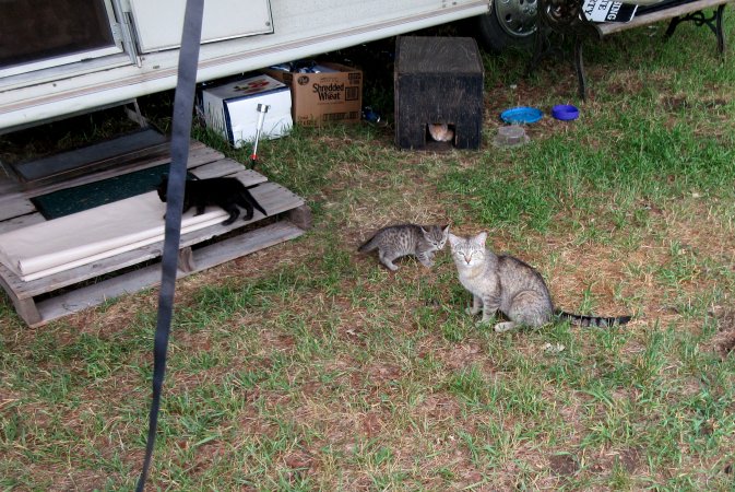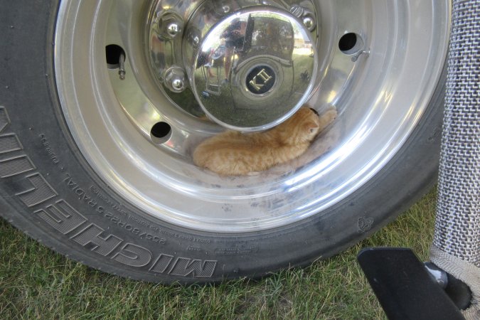 One of Robbyn's kittens decided to have a nap in the wheel of the MH.