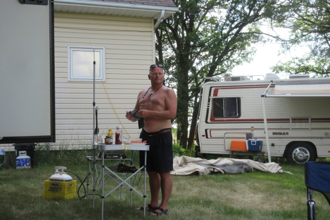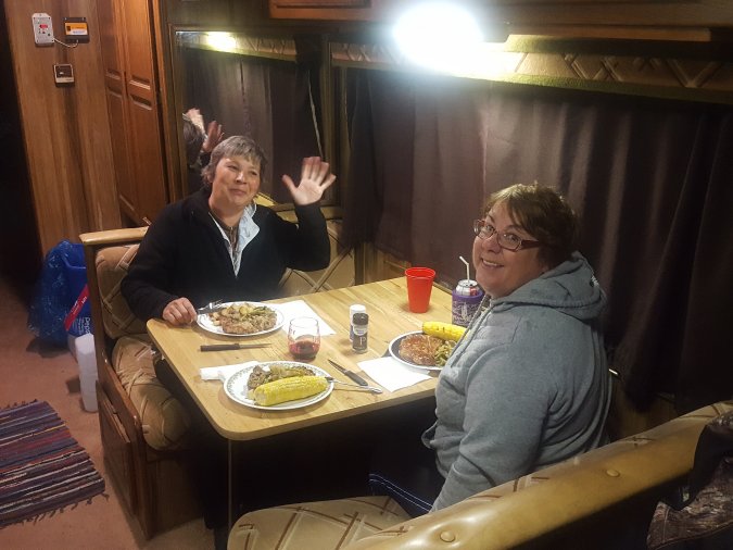 We get set-up in the driveway. Kristin cooks us a very good spaghetti supper.