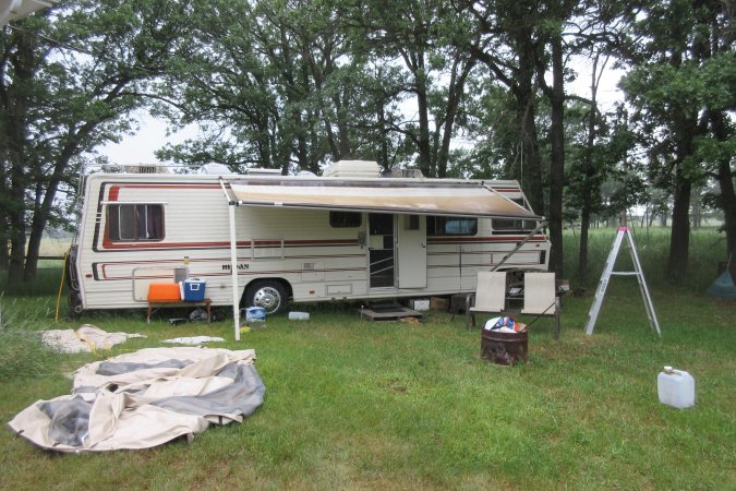 Our set up at Robbyn's place. The house is not suitable for occupancy because of mildew in the basement.