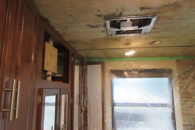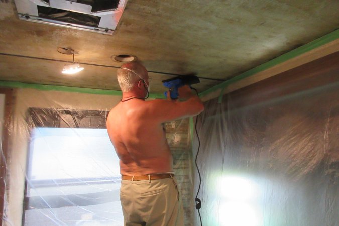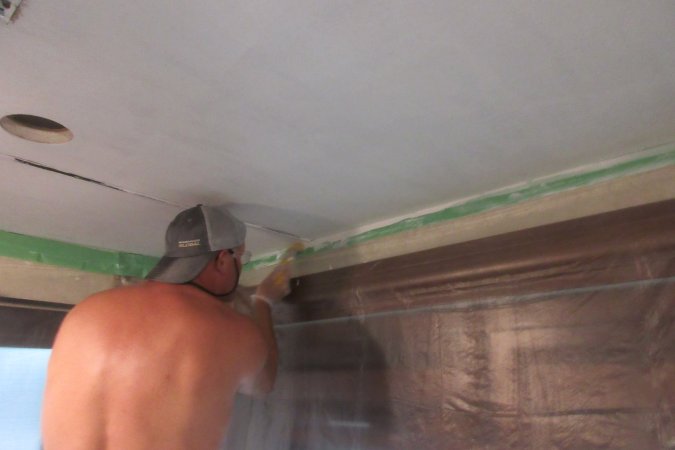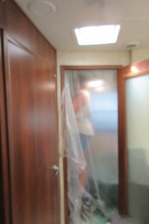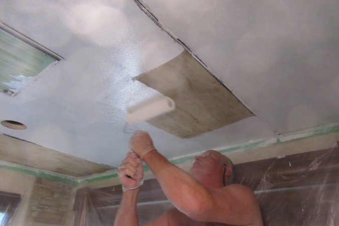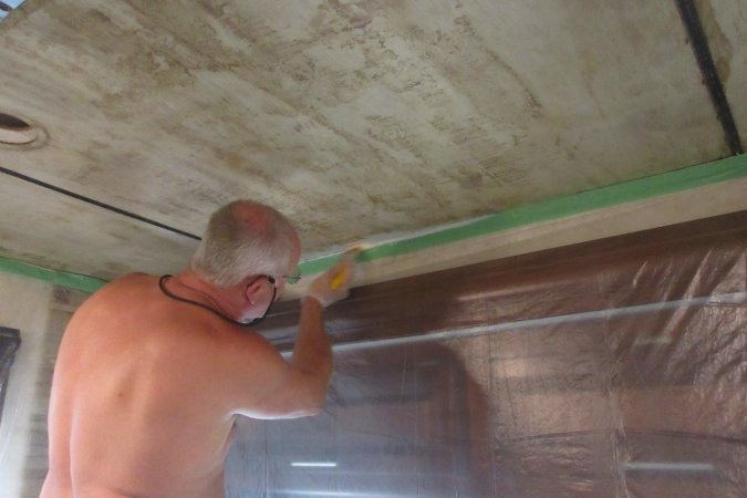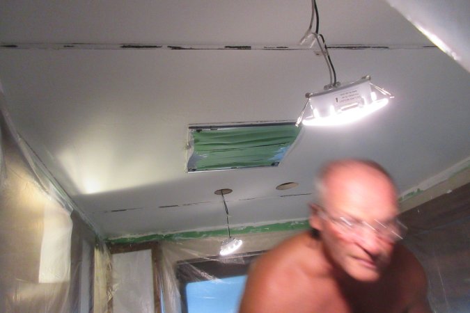 We finally get all the sanding done this morning. We even give a coat of primer to the ceiling before lunch.