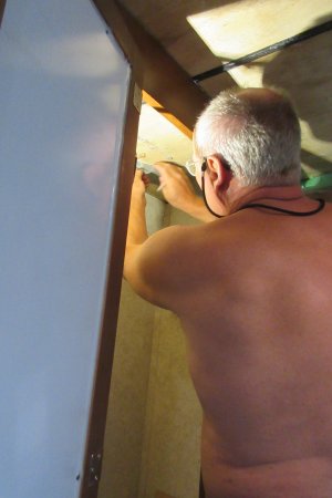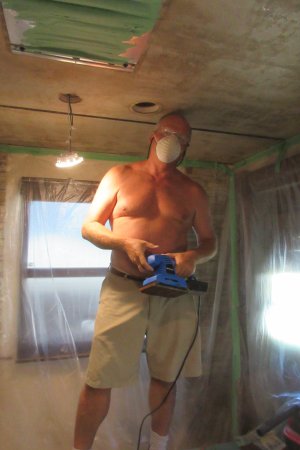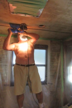 More hours sanding for us today. It is moving along nice, but my arms are still killing me.