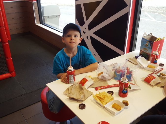 Current at the MacDonald's. Gabriel with his weird smile!!!!