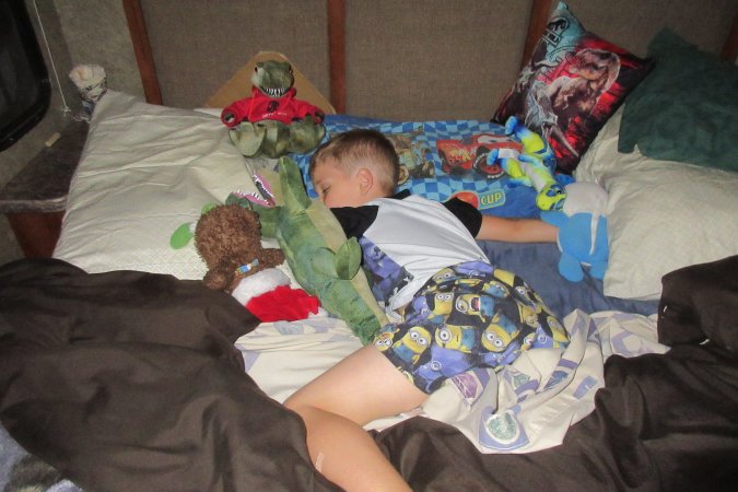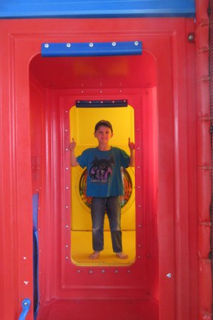 Gabriel spends some time in the Play Place before the next two hours on the road.