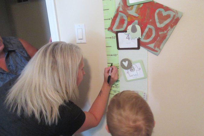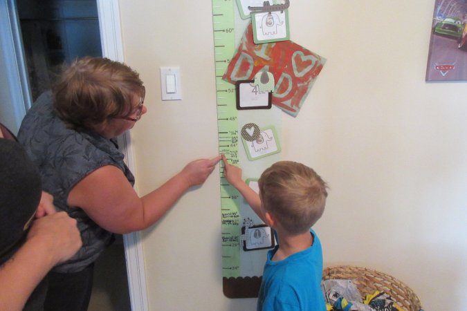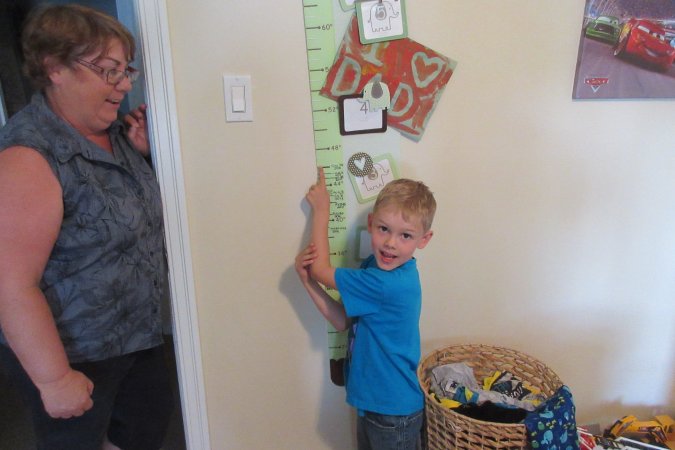 After the hugs and kisses, we head upstairs to measure how tall is Gabriel now.