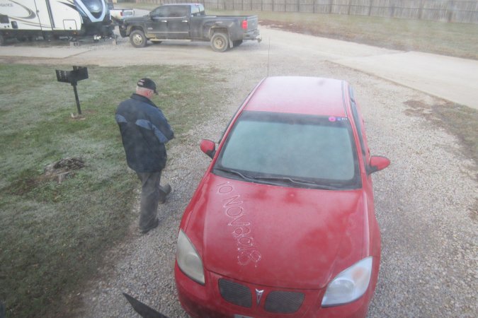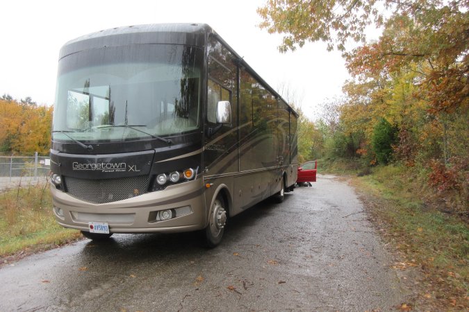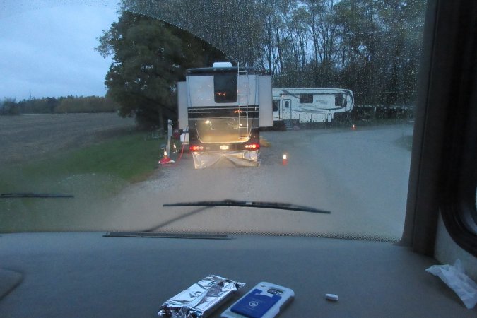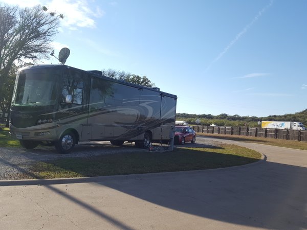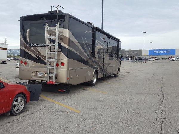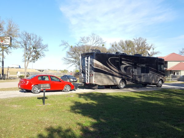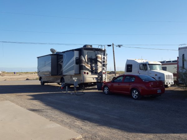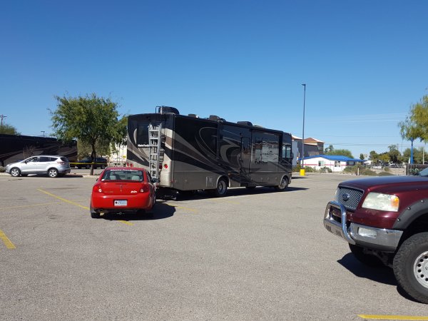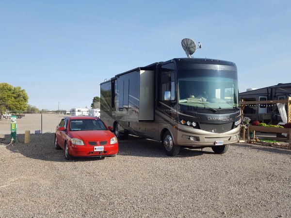 We had to un-hook the car, turn the MH around and hook-up the car again.