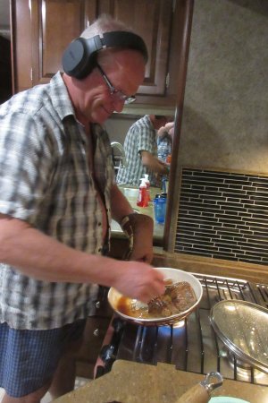 I cook our steak like the chef on TV. I keep the steak wet as it cook.