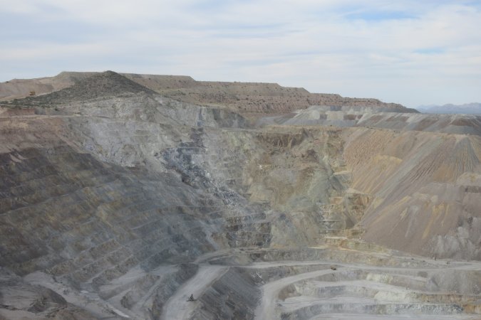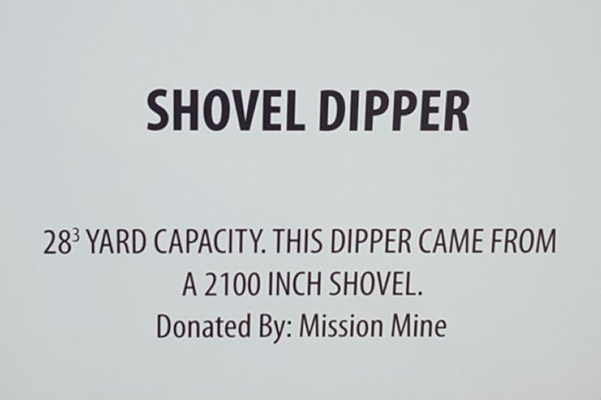 The mine is call "Mission mine." It is 1/4 of a mile deep, two miles long, north to south and 3/4 of a mile wide.