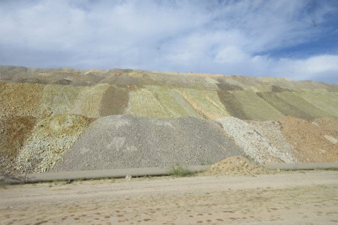 The different colour rocks are the tailing from the extraction process after the have the copper out of it.