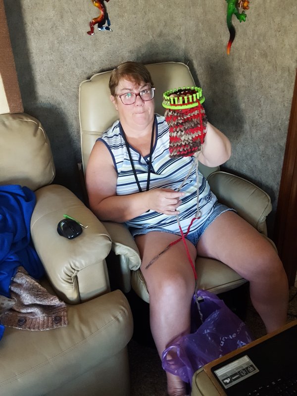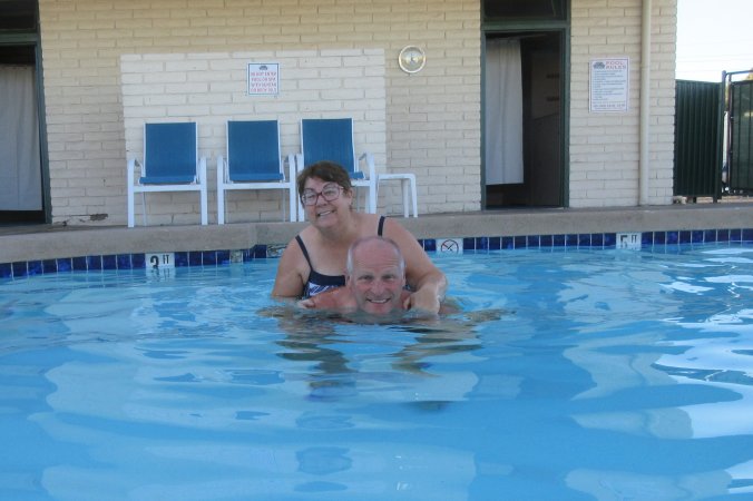 Michele went shopping for a knitting ring to knit some slippers. When she got back, we went to the pool.