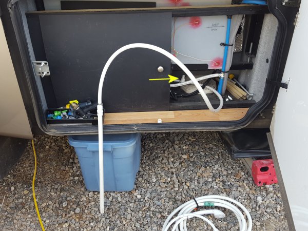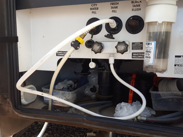 A while back, I had started a project for a way to fill the fresh-water tank of the MH when you are away from a water source.