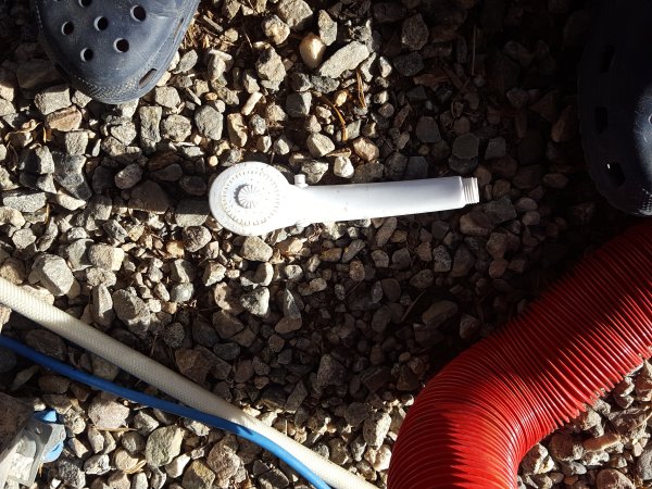 If we ever want to use the exterior shower, I just replace the shower head on the hose and voila!
