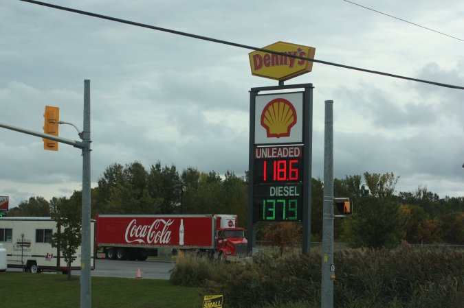 We have to drive 6 km off the 401 to fuel up on the reserve. They sell everything here!