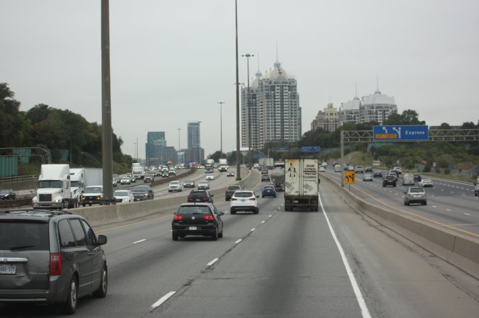 Toronto, here we come. Traffic is moving well, once again, going through Toronto is easy.