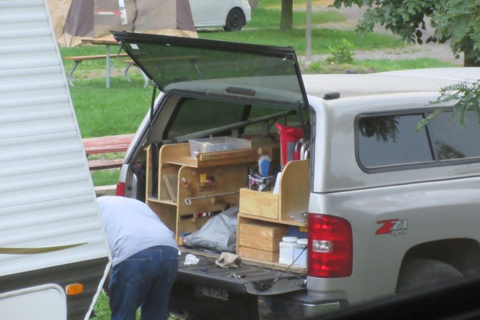 One of our neighbors is getting ready to leave. I noticed the back of his truck and it is very well organized.