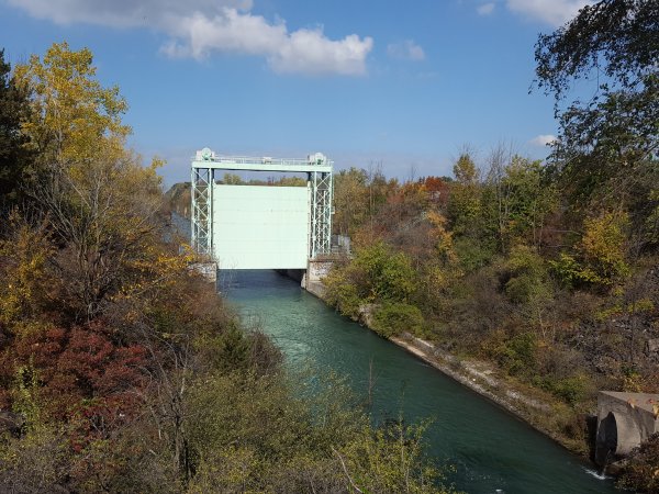Near the beginning of the canal, you have this big gate that can completely stop the water flow to the hydroelectric dam.