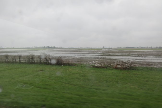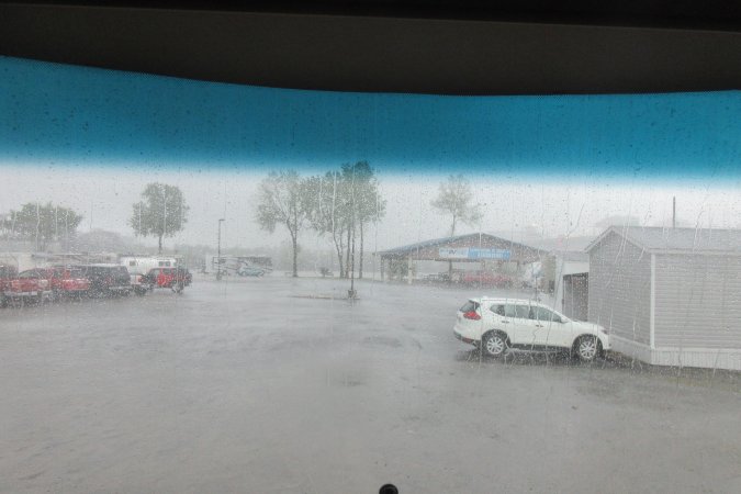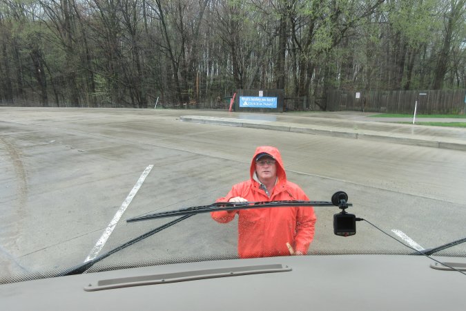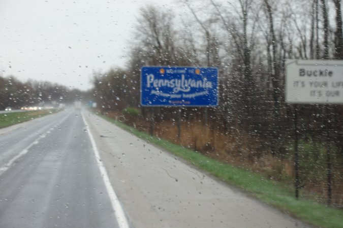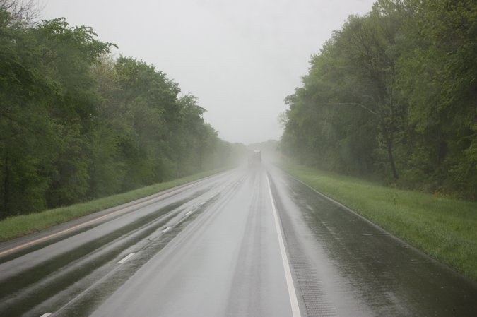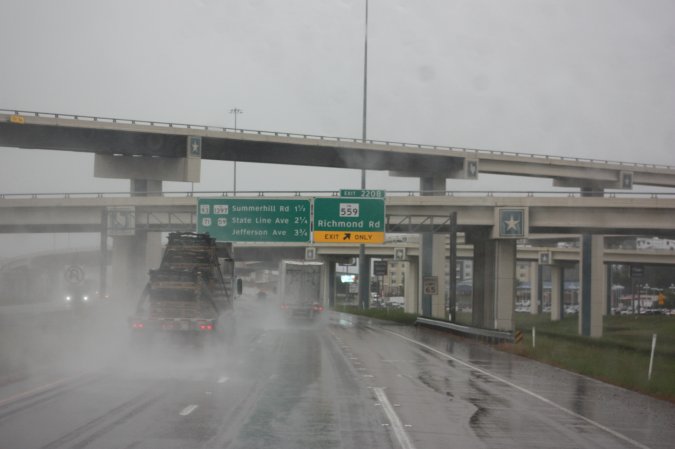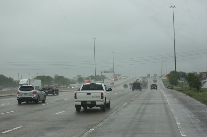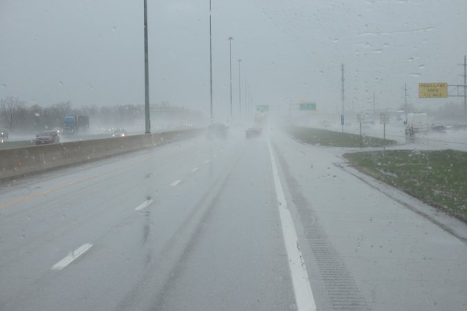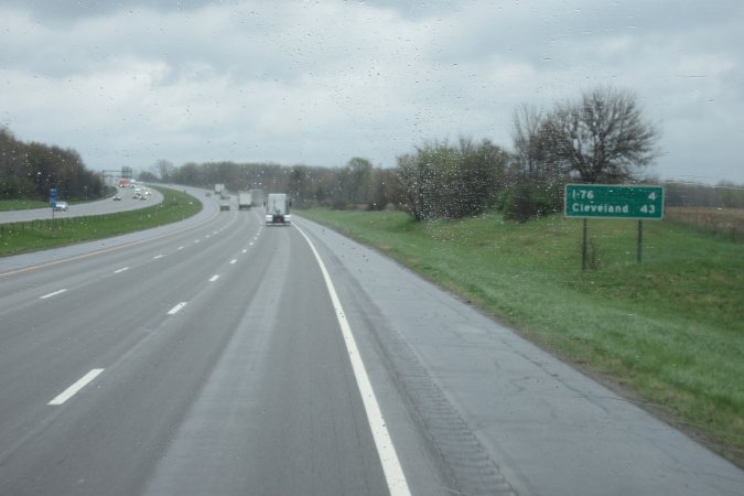 And as we continue traveling towards Cleveland, the rain gets harder and
