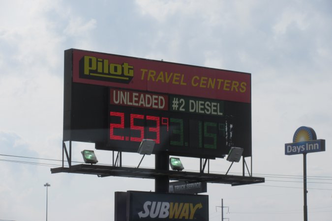 One last fill up for the MH. Why pay $1.25 per liter in Canada when you can only pay $0.90 per liter here?