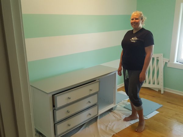 Kristin is not working today. She is putting the finishing touch on the baby furniture.