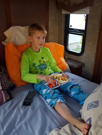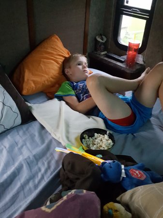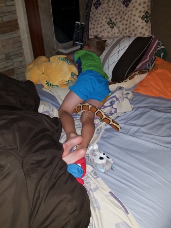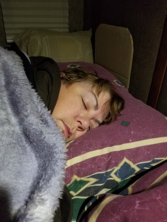 Gabriel is sleeping in the MH again. He falls asleep so fast.