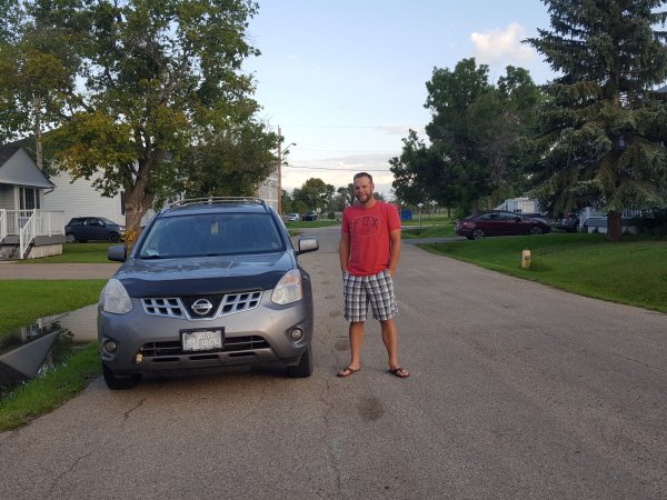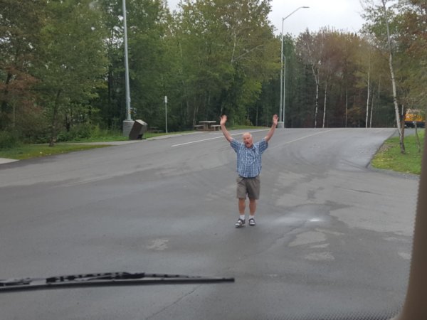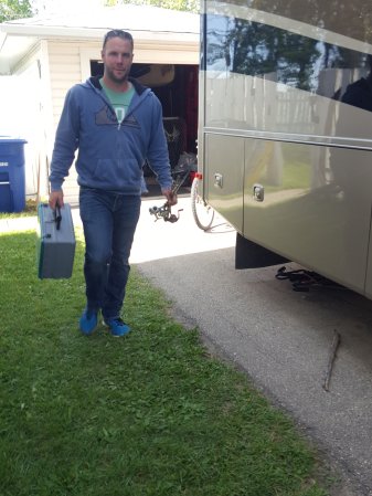 Jeremy ready to move his car so we can get the MH out of the driveway.