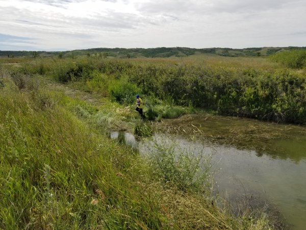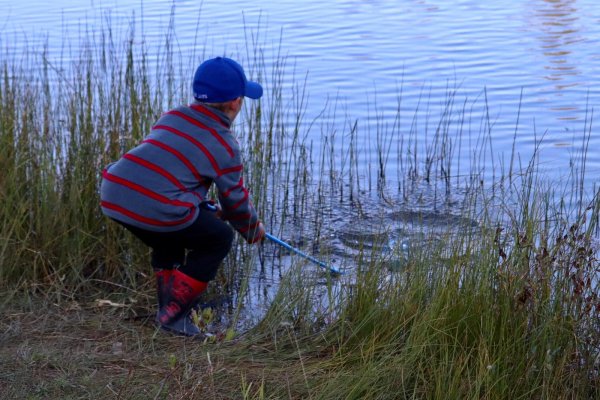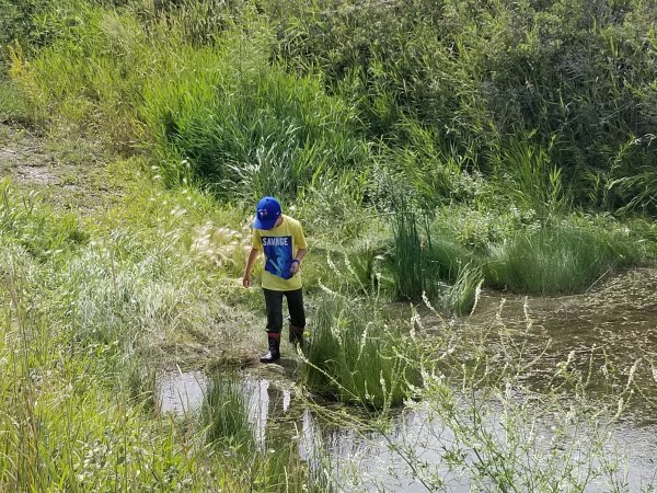 Gabriel is one happy young boy. Shallow water with lots of weed equal minnows, frogs and snakes.