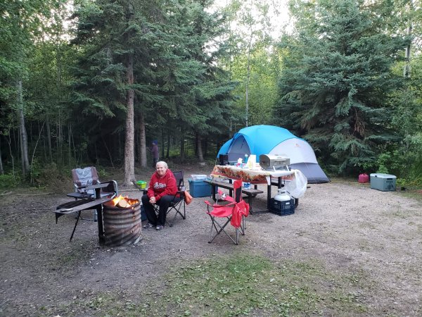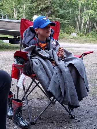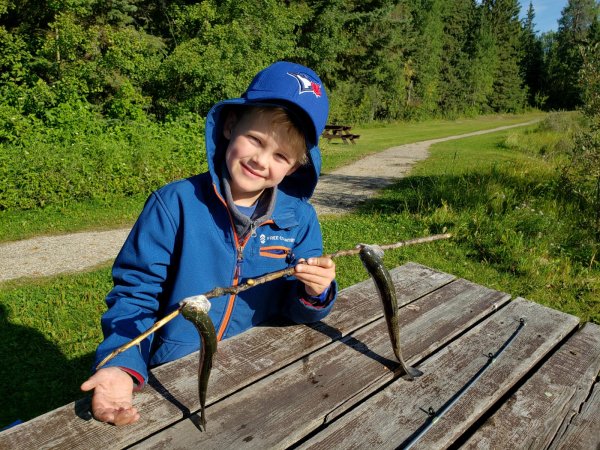 Campfire, fishing and hiking, a great time for Gabriel.