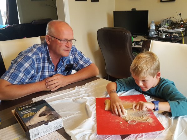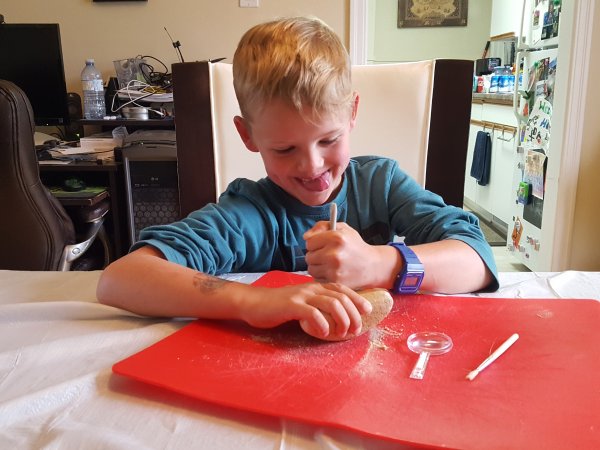 While waiting to supper, Gabriel will be digging for some shark tooth.