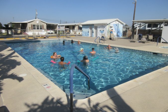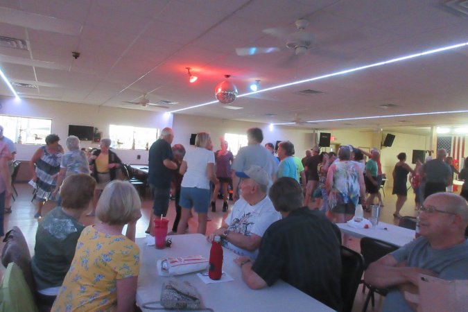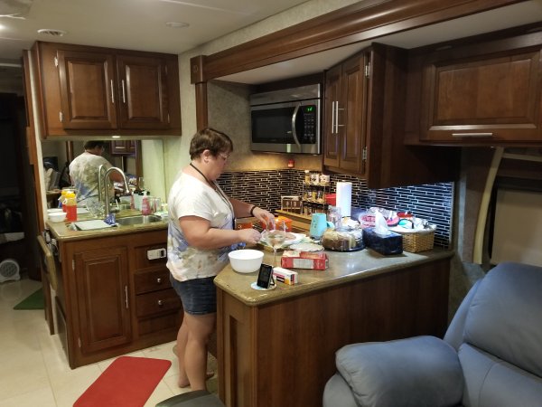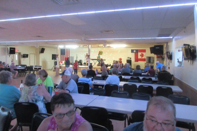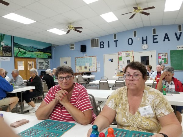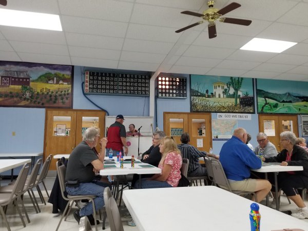 Monday is bingo night at the RV Park. The lady in the "box" is the