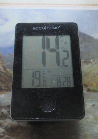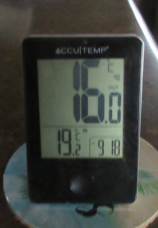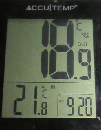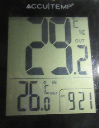 The weather at 9 am. Next to it, the maximum temperature we reached today.