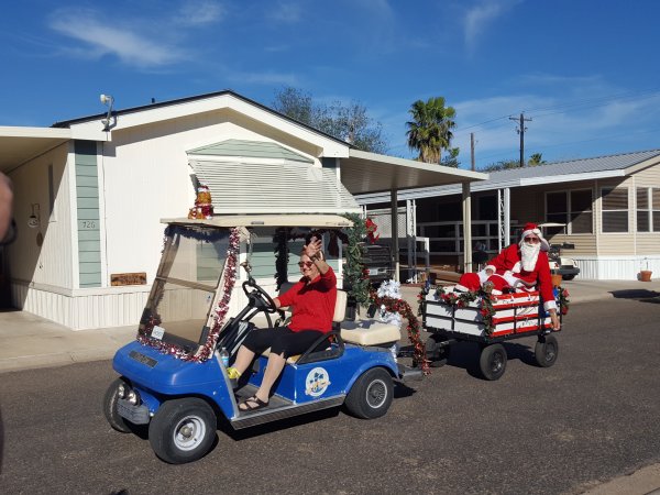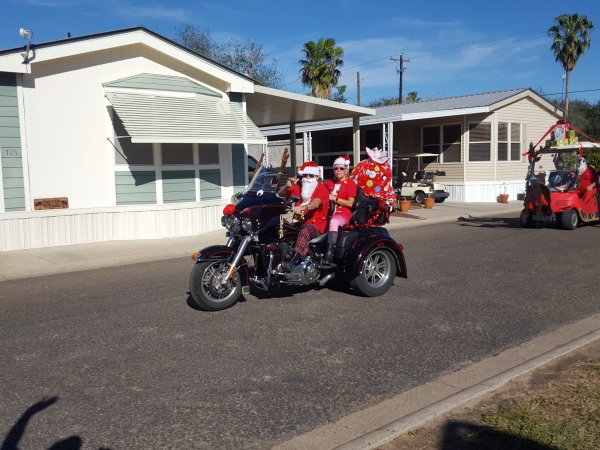 A nice hot day today. We have a small, very small Christmas Parade with some motorcycles, golf carts and bikes.