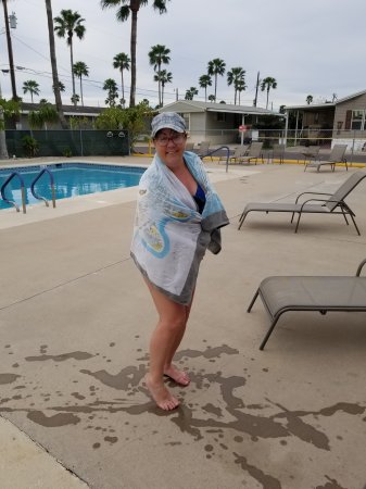 Even with the wind, cloudy sky and only 20° C, we still went in the pool.