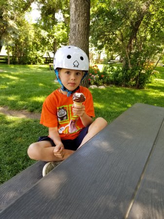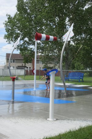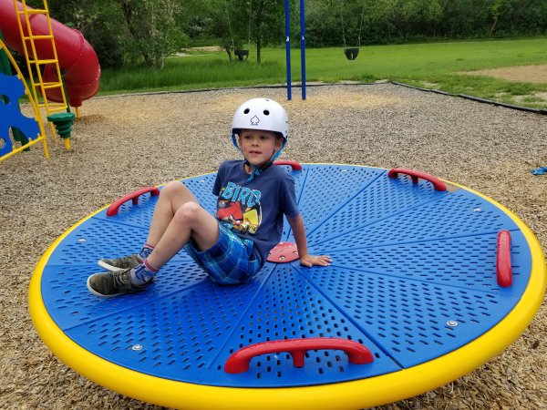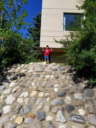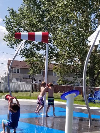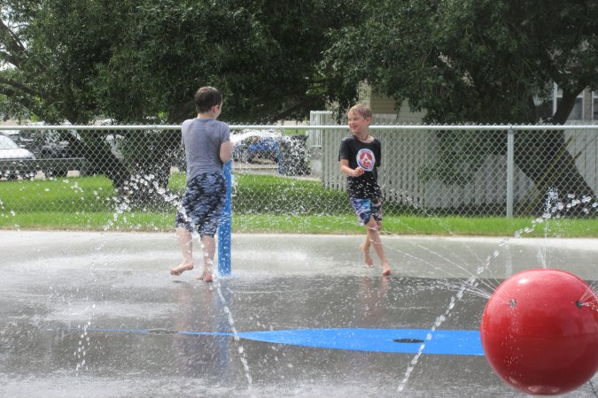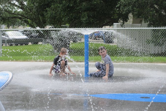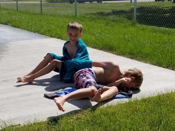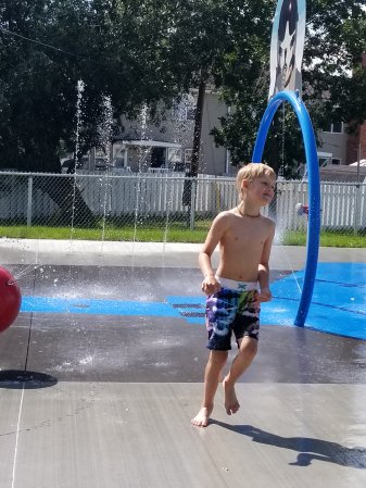 In late afternoon, Gabriel went playing at the water park with his friend Joshua.