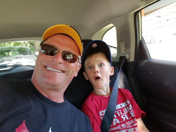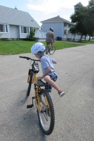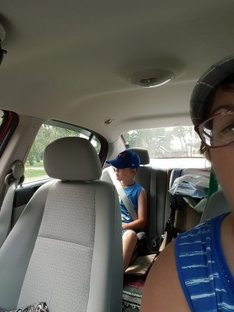 Gabriel on his way to his first swimming lessons. All three of us are going. Kristin could not get off work to come.