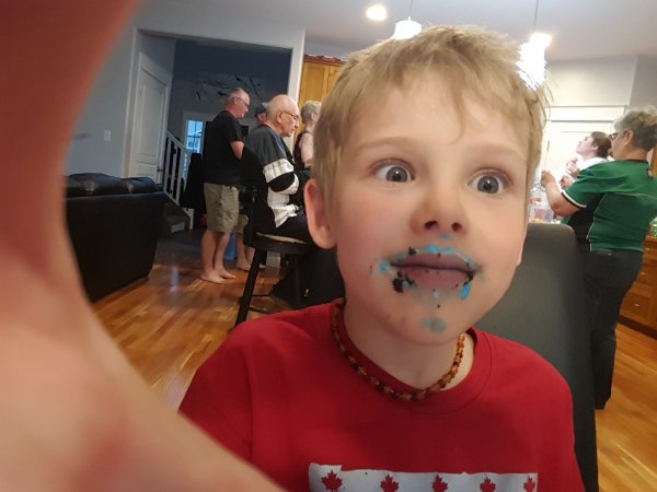 Everybody is talking about the baby to come, but the two boys are just eating cake!