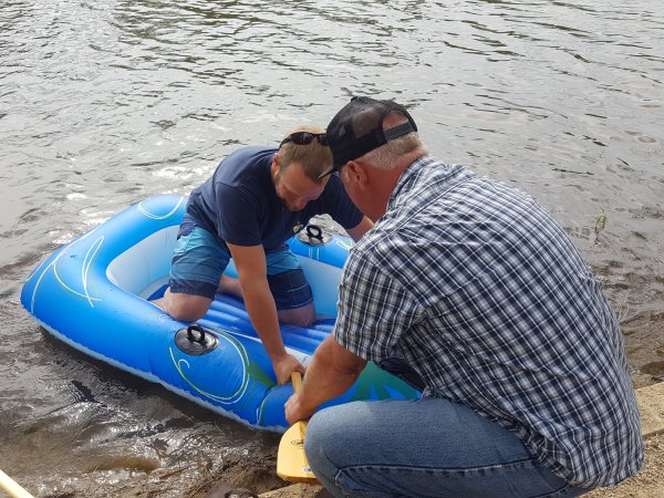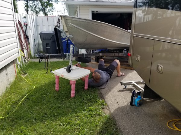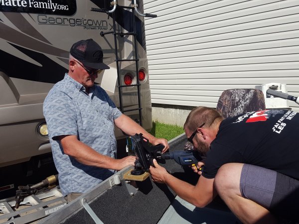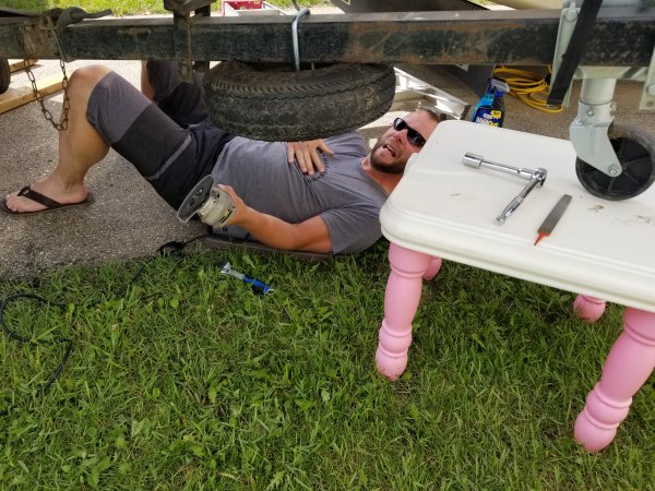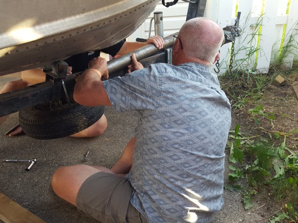Later on, Jeremy found a heavy steel bar to add to the front of the trailer to make it safer when pulling the boat.