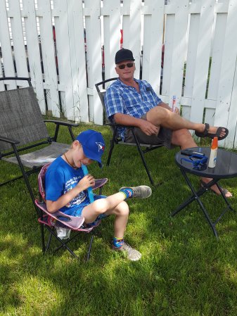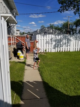 After supper, Jeremy took Gabriel out in the backyard and practiced casting a fishing lure.