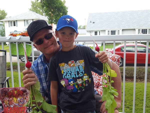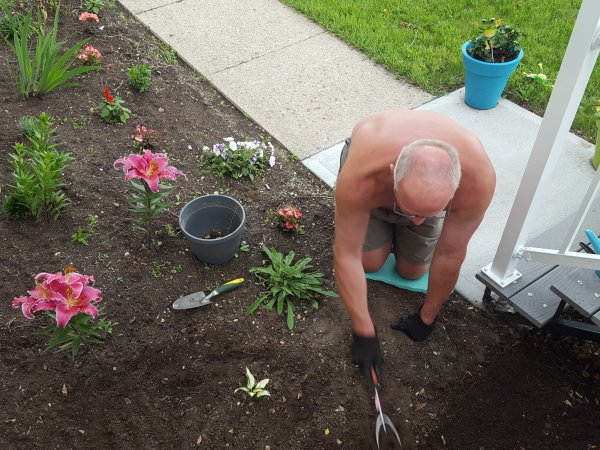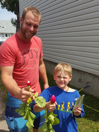 I weeded the garden this morning. The garden has beans, corn, radish and pumpkins and plenty of mosquitoes.