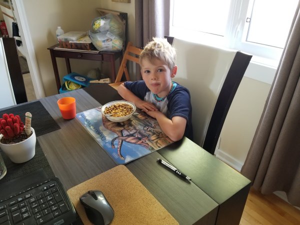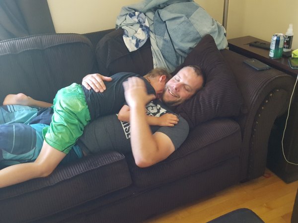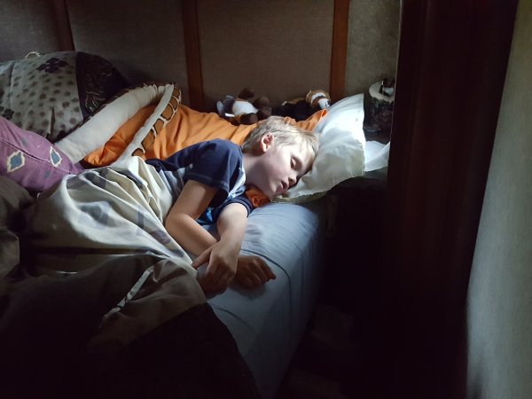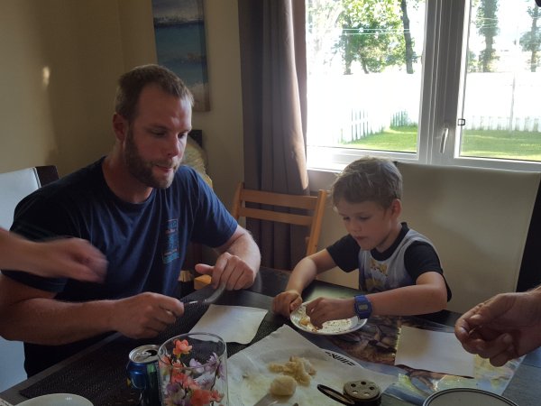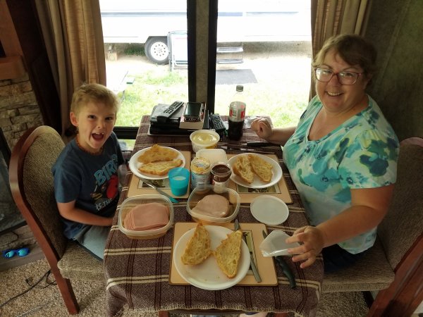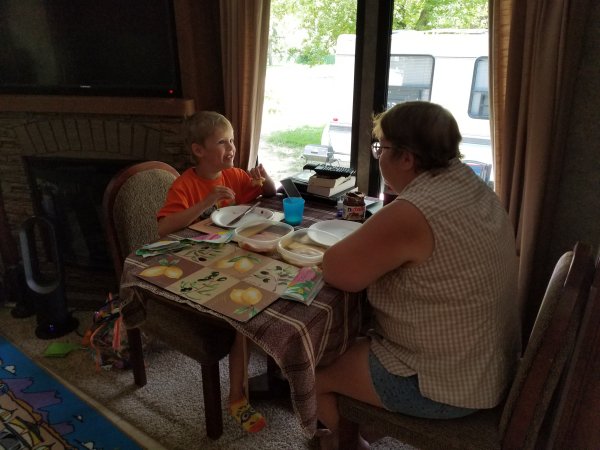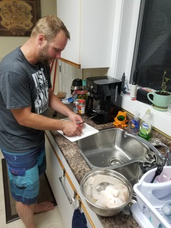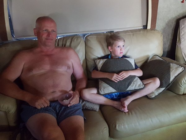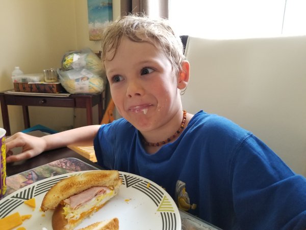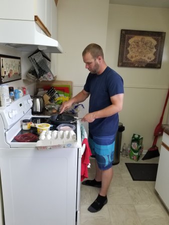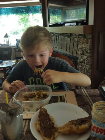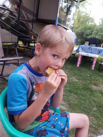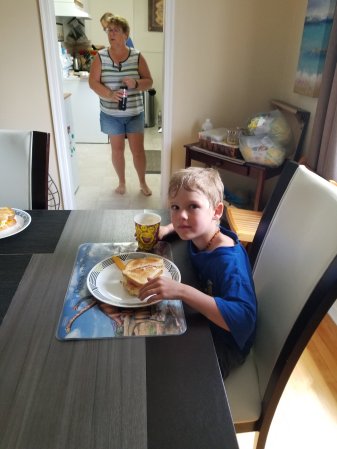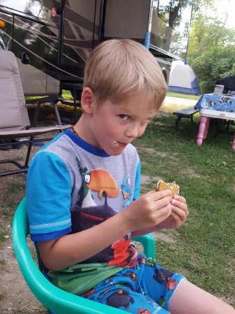 After Gabriel's bath, Jeremy cooked the walleye. It was good.