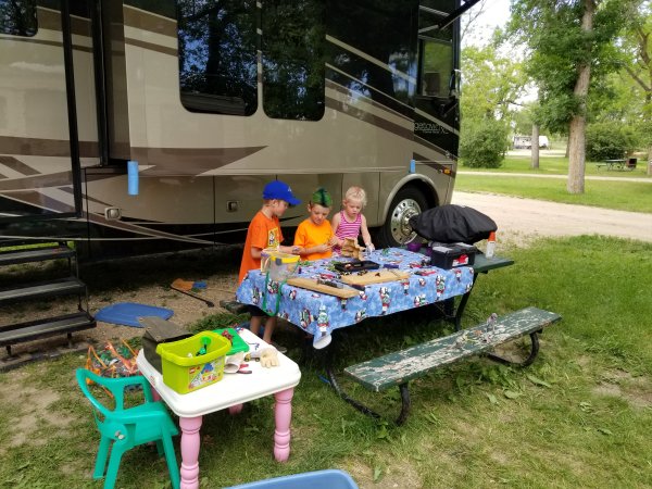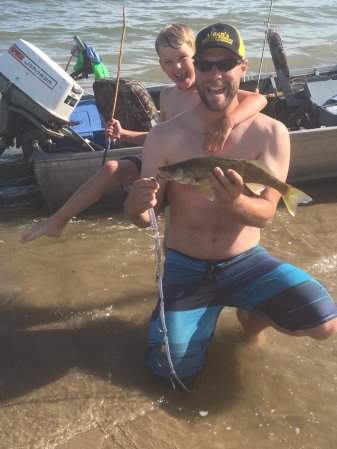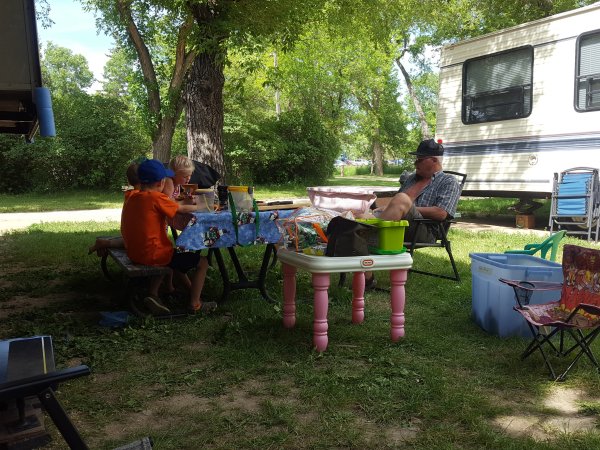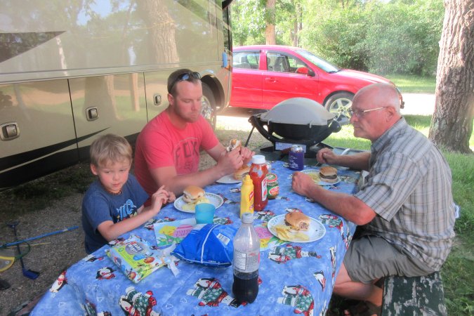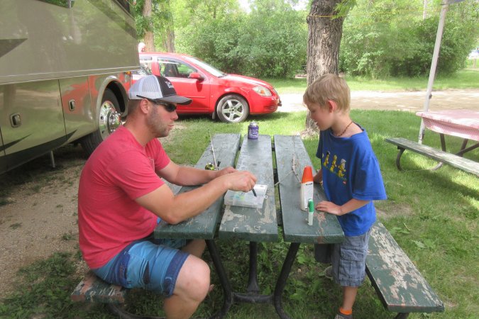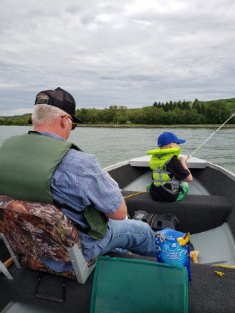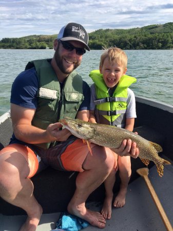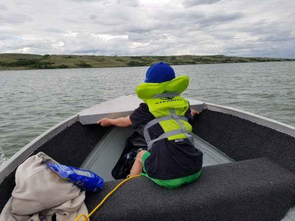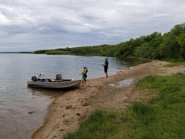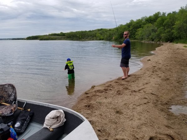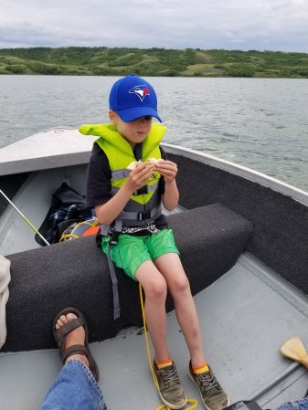 After lunch, Kristin, Jeremy and Gabriel were going fishing at Diefenbaker Lake.