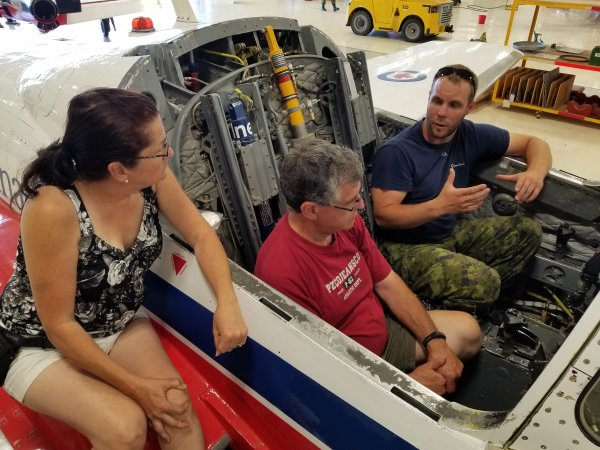 Jeremy had time for a tour of the squadron with Murielle and Jacques. They really enjoyed the tour of the Snowbirds hangar.