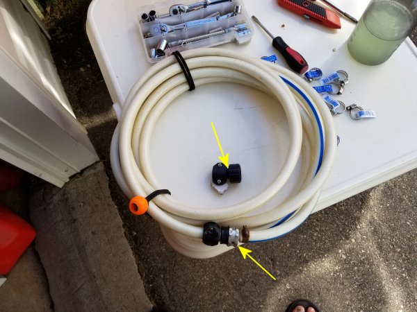 Michele and I are staying home. I am fixing the two clean water hoses ends with either new metal clamps or new plastic end.