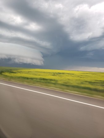 very hard. They had to drive at over 110 km/h to get out of the storm.